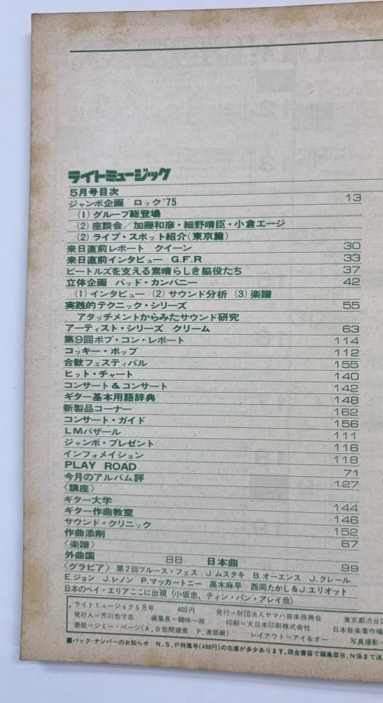 ライトミュージック 1975年5月 ジミーペイジ / 加藤和彦 細野晴臣 クイーン キャロル RCサクセション 五輪真弓